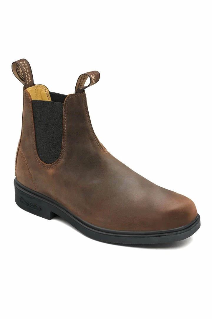 Here’s a dressy twist on a Blundstone boot in a leather with deep character. The 2029 Blundstone Dress Chelsea in Antique Brown looks like you’ve owned them forever. And you might! Chisel toe shape is a dressier cut that gets the job done. Unbeatable Blundstone all-day comfort and long wear.