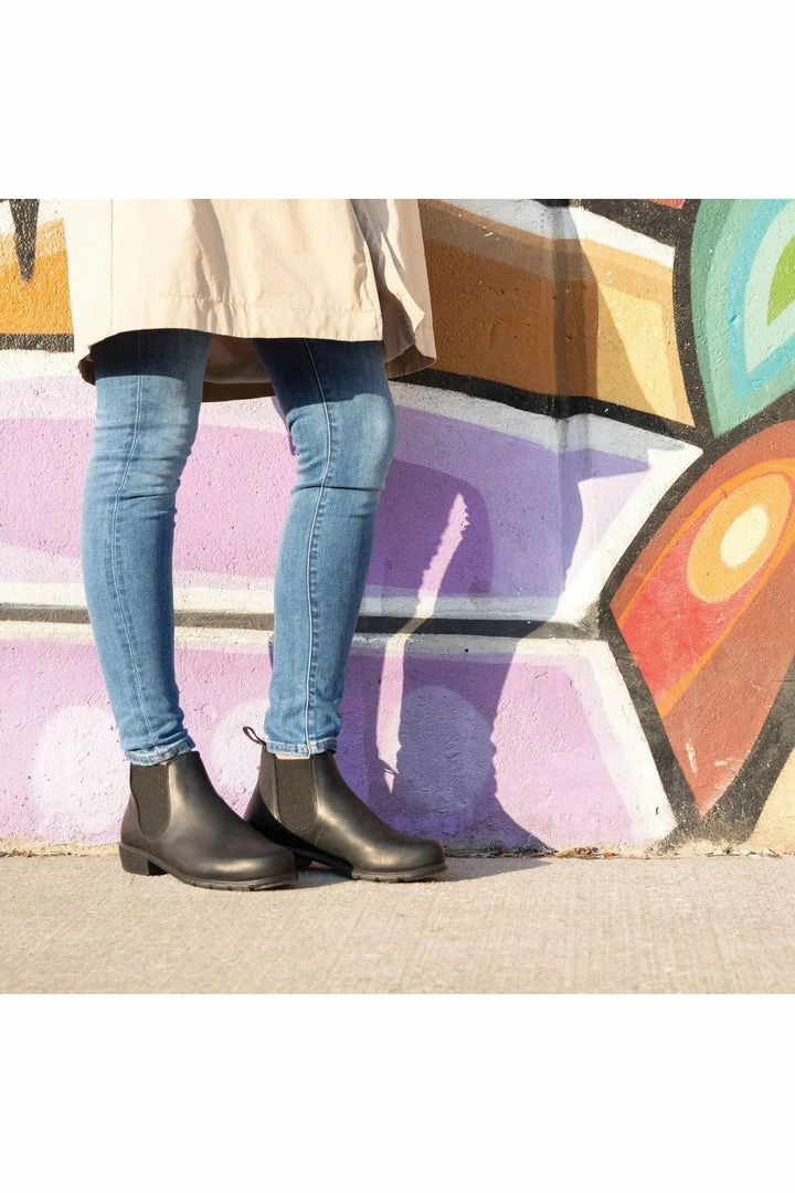 Blundstone Low Heel ankle boots in Black go with everything from cutoffs to culottes, as only black can. This Blundstone black leather starts soft and takes on a gorgeous patina the more you wear them—which will be a lot. All-day comfort on every surface and built to outlast more than a few fashion seasons. *Exclusive to Canada.