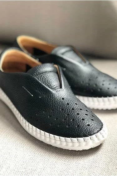 Denmark is lightweight sporty slip-on style with a super-flexible sole and round perforations on the toe.