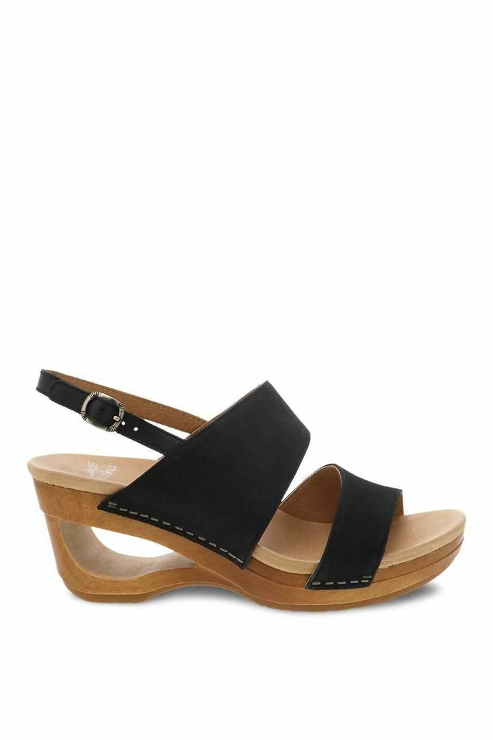 The Tamia is an open-toe sling-back with an asymmetrical vamp, a wide instep strap, and an adjustable sling-back heel, all sitting on a lightweight TSR midsole, made lighter with a fashionable contoured cutout. This unique style also features leather uppers, an EVA footbed with memory foam, and our stapled construction.