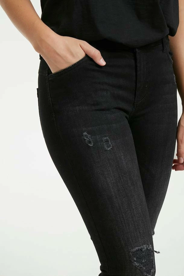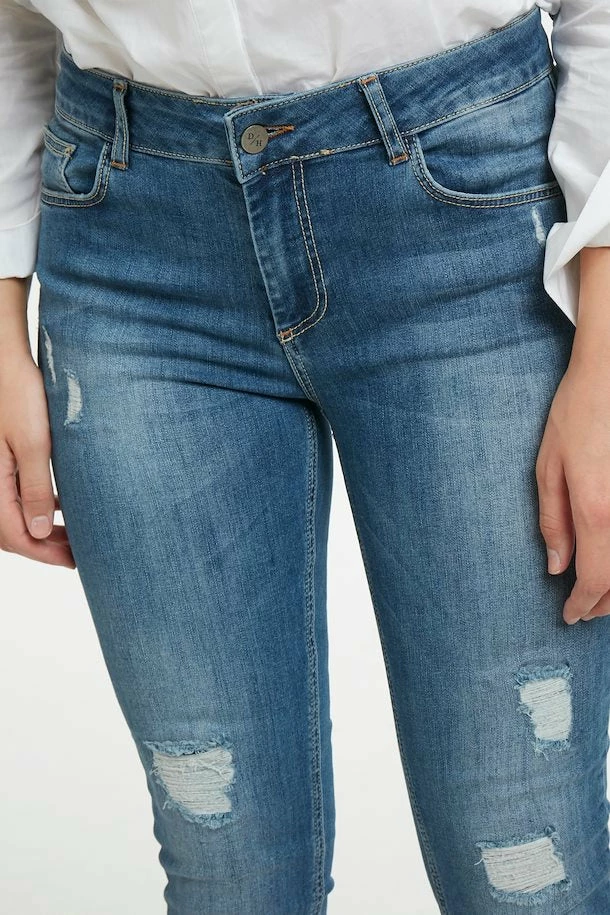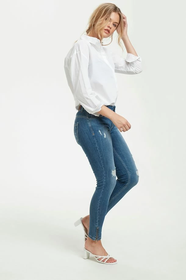 The Celina Zip Torn is a soft denim Jeans with lot’s of stretch. It has a 7/8 leg-length, medium waist and a zipper detail at the leg. This model has a busted knee in a cool way.