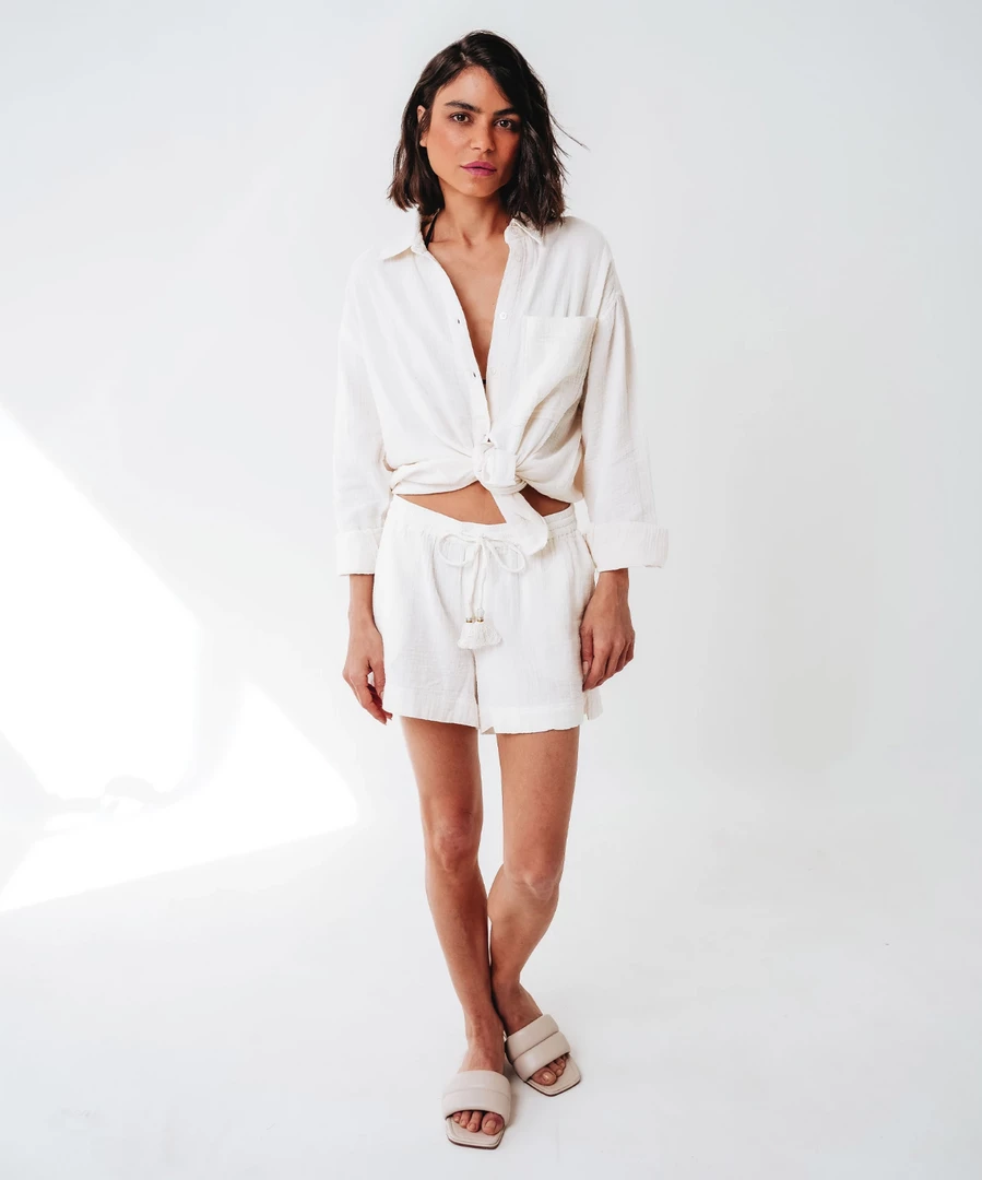 Light as air and just as breathable, our super-soft double gauze will be your go-to all spring and summer long. With perfect pockets and hand wrapped tassels on the drawstrings, the Beach Shorts are a comfy staple that easily travel from the beach to the street and anywhere else your warm weather adventures take you.