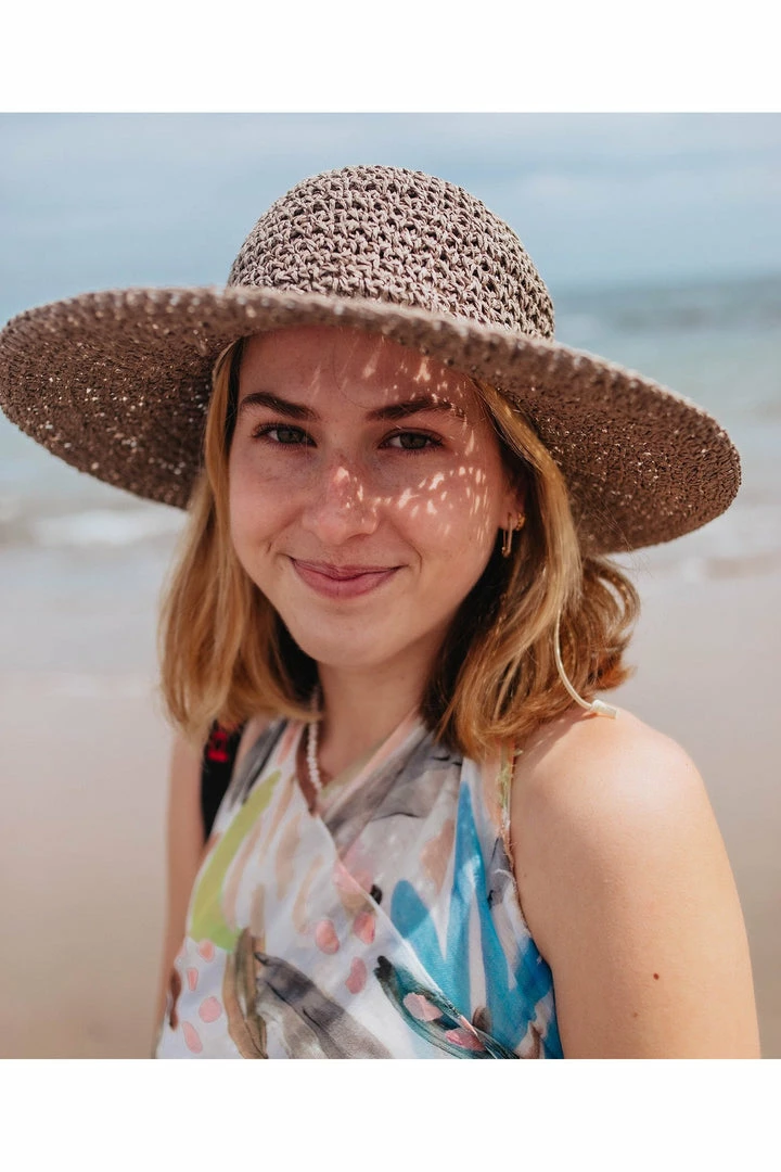 Perfect for tossing in your beach bag, this crushable sunhat is crocheted to keep its shape. The medium brim shields your eyes from the sunshine.