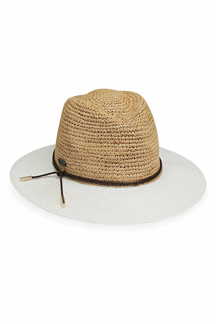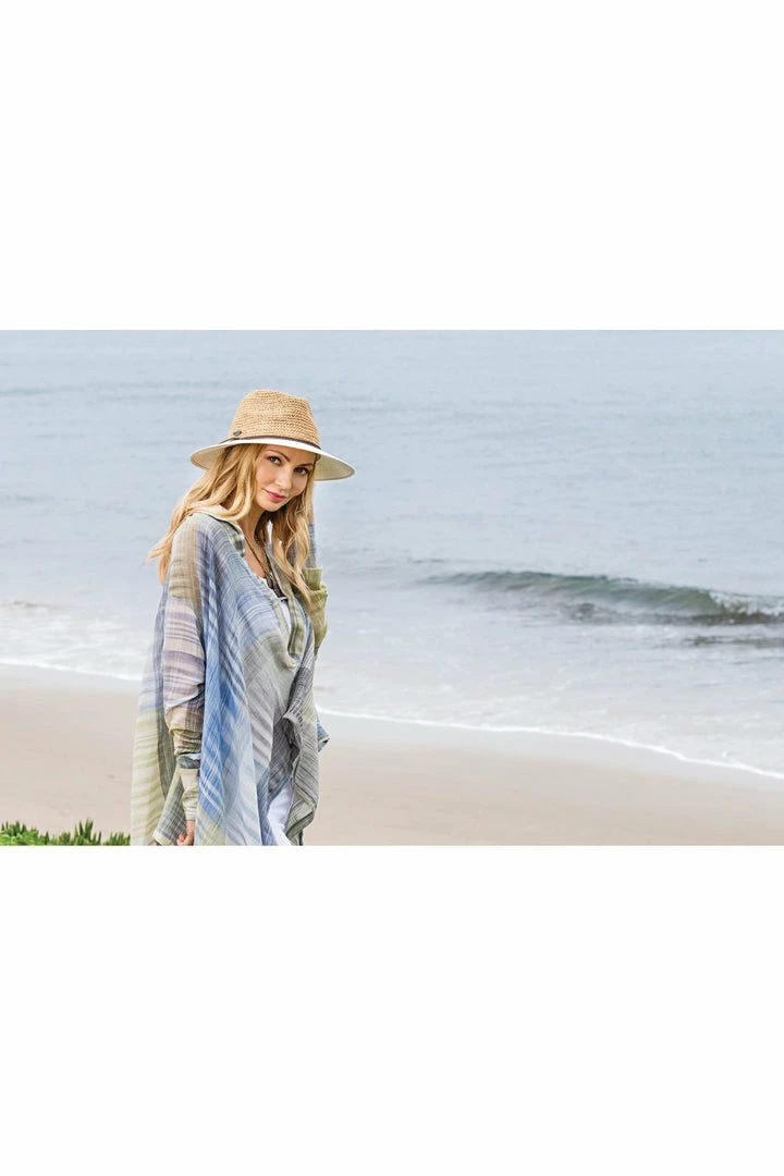 Raw meets refined in a pair of contrasting textures – a lovely pairing of natural fiber with the structured lines of paper braid. The Laguna can be worn for walks on the beach or attending an art festival. Its faux leather cord with gold metal tips brings a modern feel.