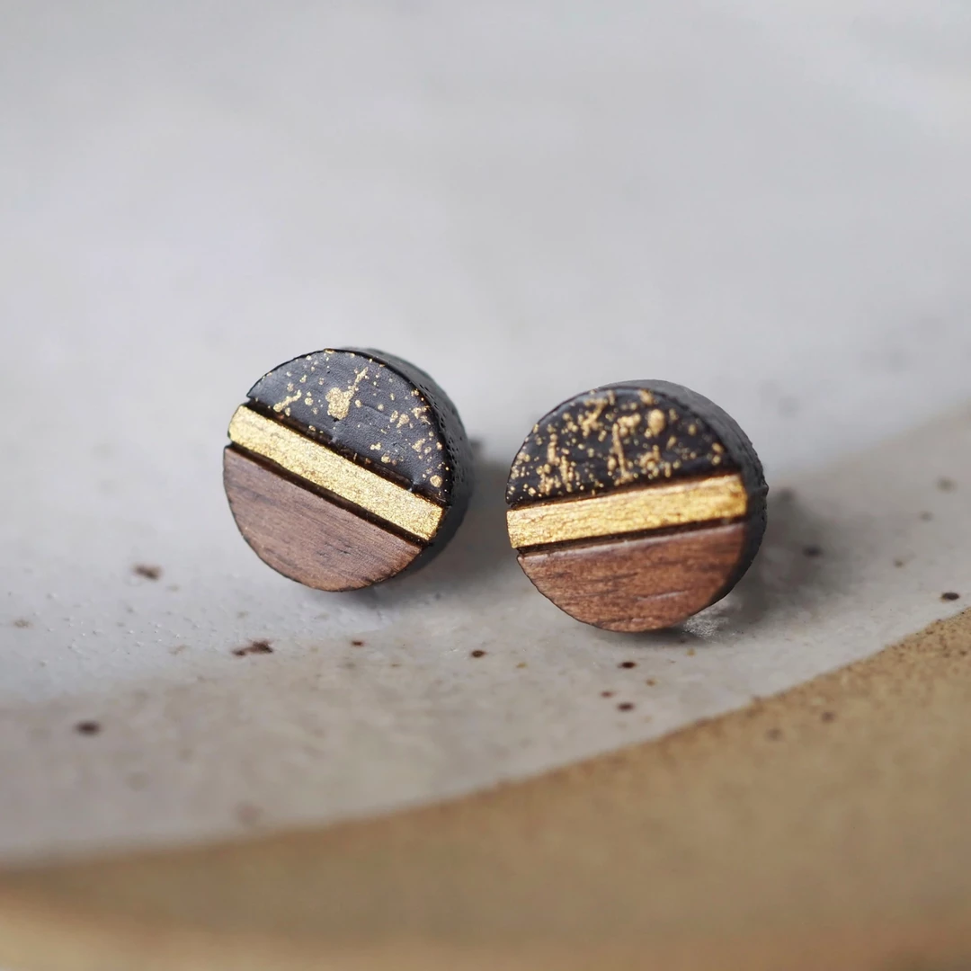 Who doesn’t love a little gold? We hand-painted these little studs to give you a little sparkle through your day. These small wooden studs have been sealed with multiple layers of a high grade spray varnish to help protect them from the elements.