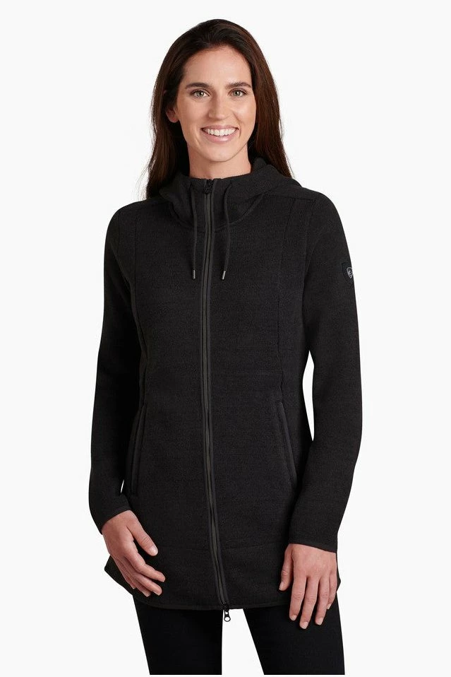 With unique styling and a modern, feminine, fit, KÜHL’s ASCENDYRâ„¢ LONG Women’s Hoody is at home on the trail or the streets. This durable, soft to the touch, fleece is as comfortable as it looks. Two zippered hand pockets supply secure storage.Â