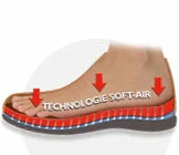 The SOFT-AIR midsole, present in every style of shoes and sandals, reduces the shock resulting from walking. This protects the back, the vertebrae and joints.
