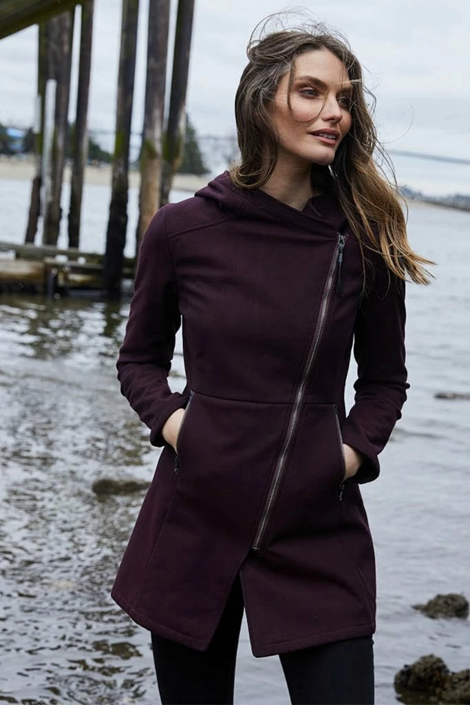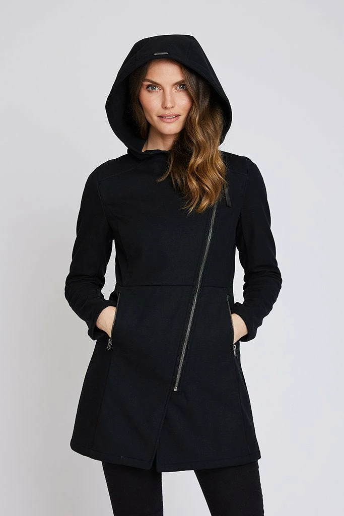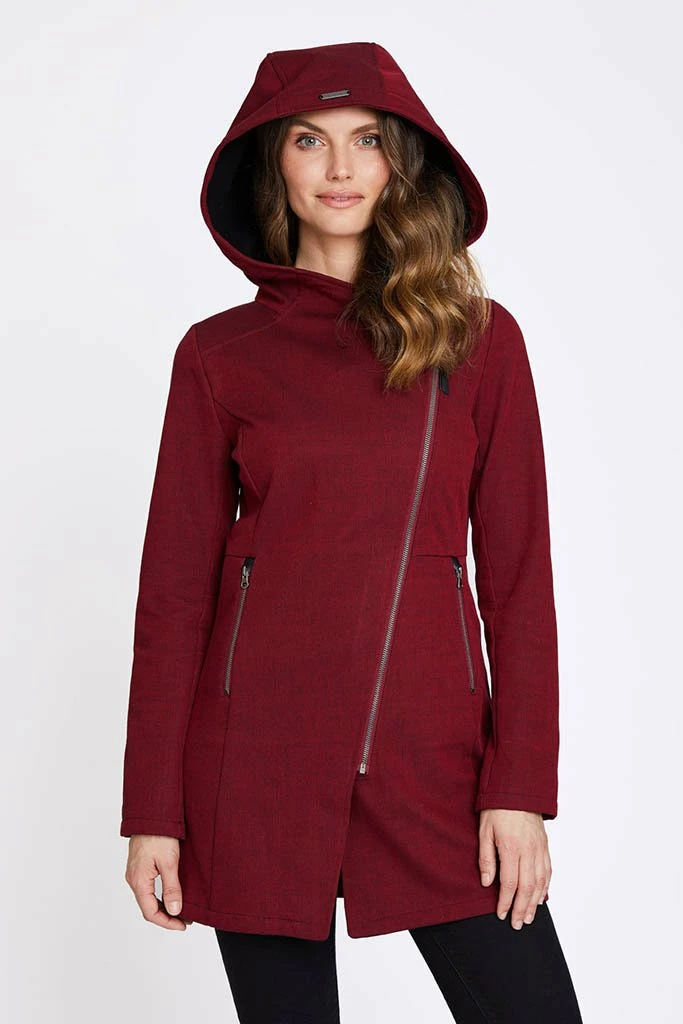 The Mia Melon Houston Jacket is made with a soft cotton herringbone and designed with innovative fabric technology that is both waterproof and windproof. Wear this jacket in a variety of different ways. The zipper is an assymetrical antique nickel zipper front opening with faux leather zipper pull trim and can be worn open for a unique look. The hood is attached and has a cozy microfleece lined interior. This style also features cozy micro fleece lined side pockets with zippers and a faux notch detail at the back hand cuff. Wear the Houston from Fall to Summer.