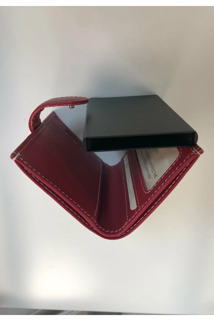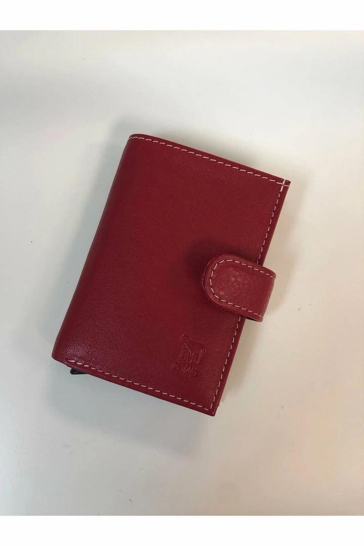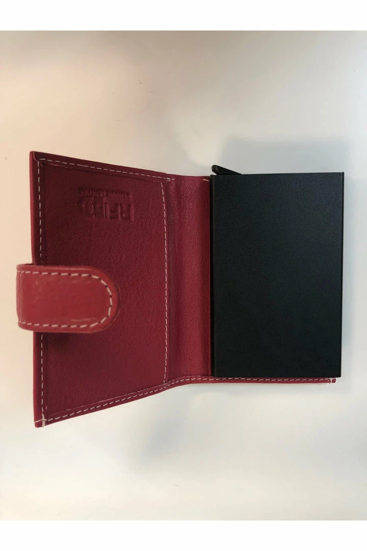 A Credit card wallet with an auto mechanism to push out the cards.Â