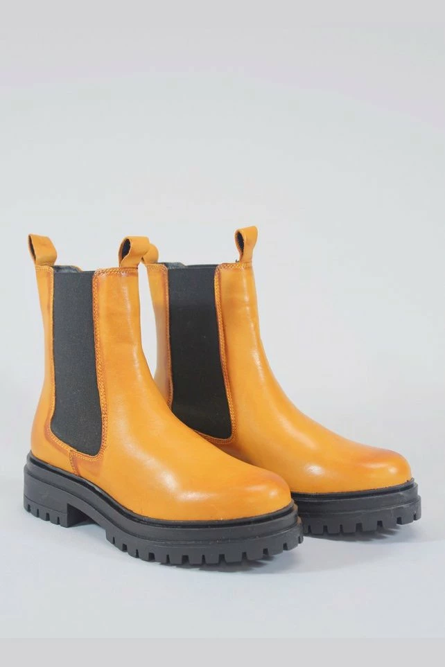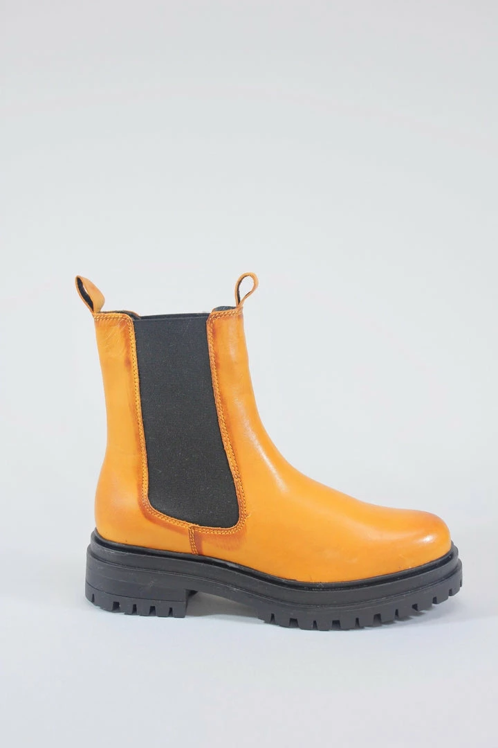 This Chelsea boot in burnished leather for an antiqued appeal, on a chunky rubber sole that will take you walking all over the city