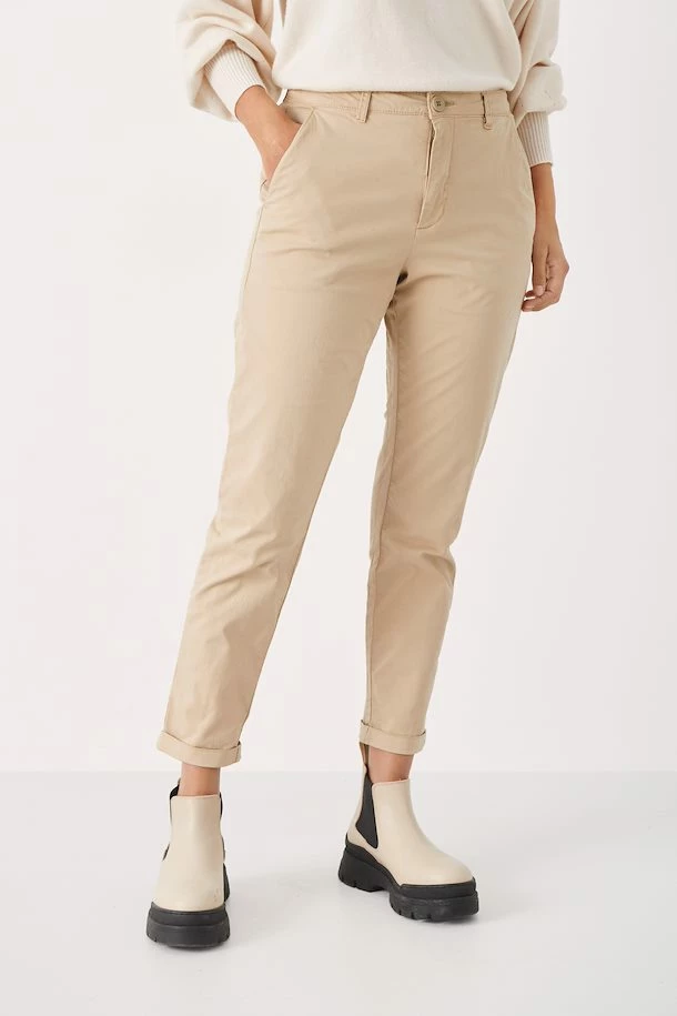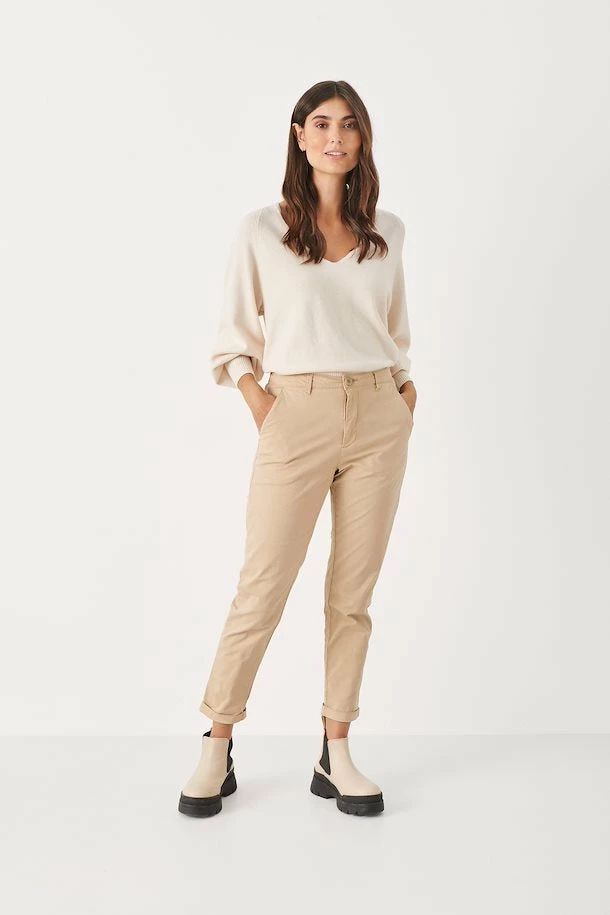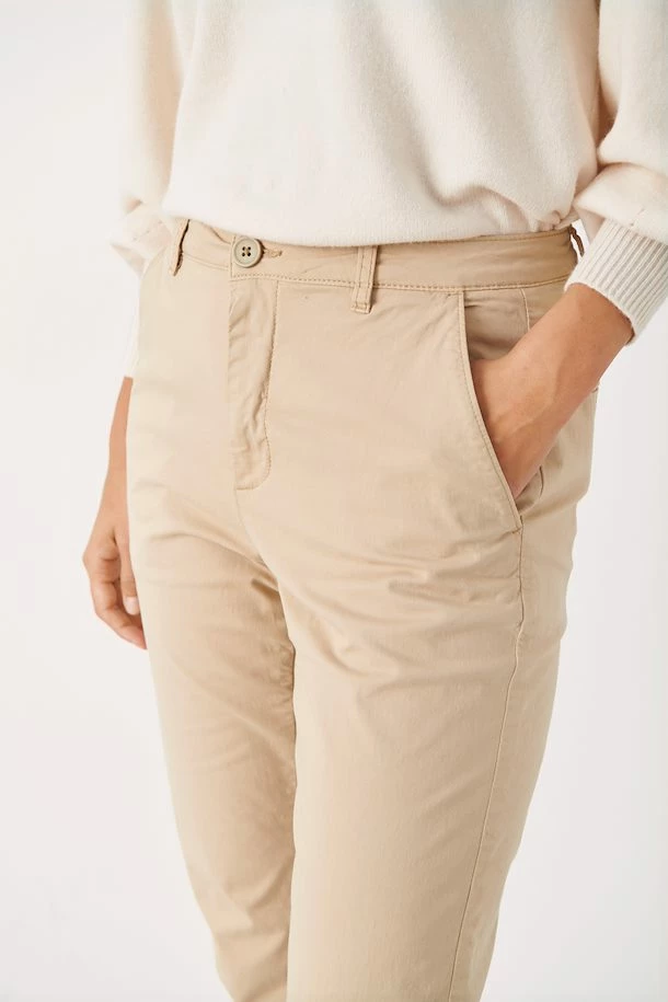 An update on Part Two’s best selling Soffa Pant, this soft and casual chino style has a button instead of a hidden clip for waist fastening, added belt loops and a cuff.