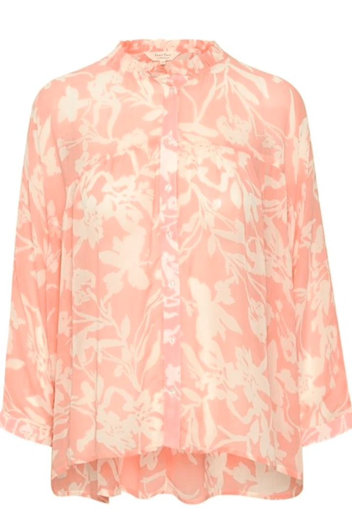 This shirt is so dreamy. The cut is a gorgeous loose fit batwing that lends itself perfectly to the ‘French Tuck’. The collar has a dainty ruffle to it and it features a curved hemline.