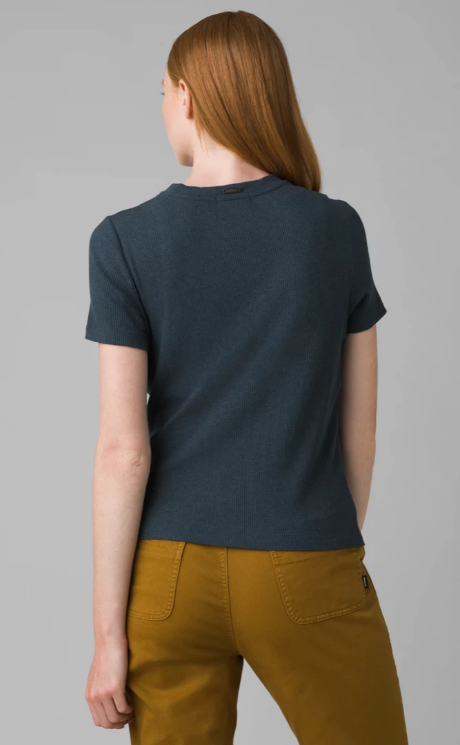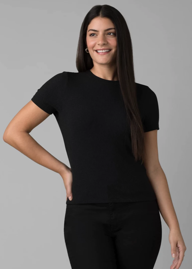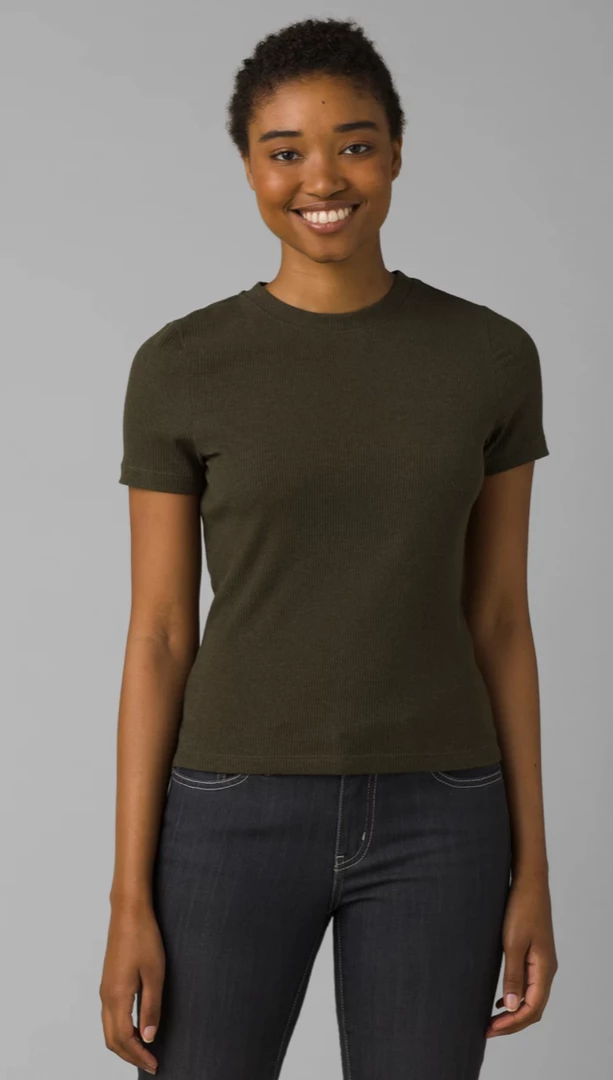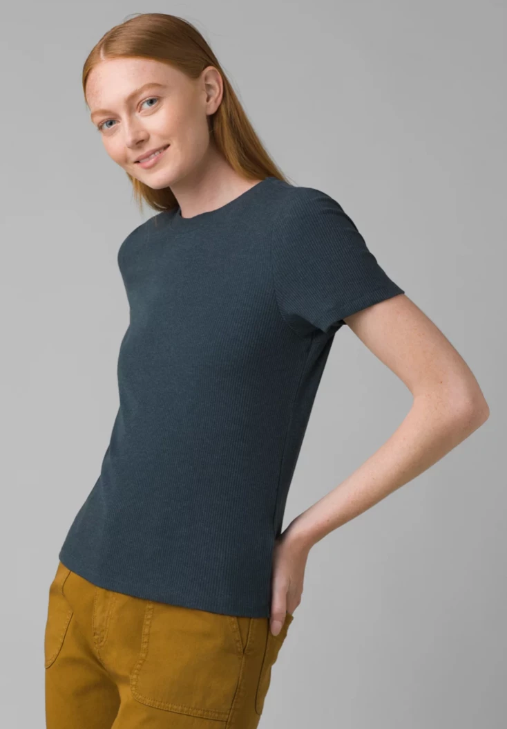 The ribbed fabric is a great way to add a pop of subtle style to your look. And as the name implies, this women’s tee is a great foundation to your wardrobe, so try pairing it with shorts and sneakers in the summer or layered with a sweater in the colder months.