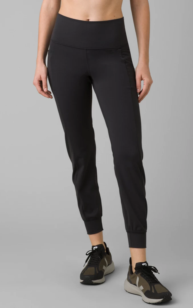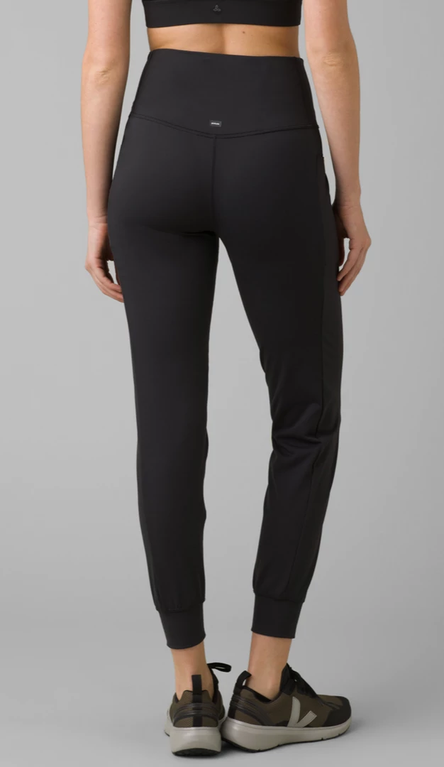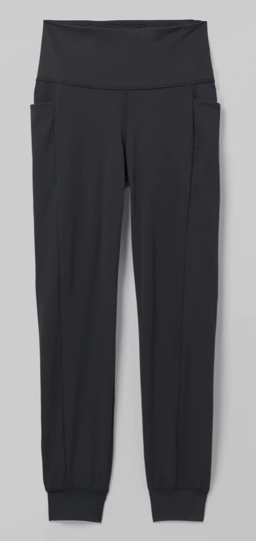 Recycled nylon blend lightweight stretch interlock with moss face finish • UPF 50+ • Moisture wicking • Full length jogger with wide waistband • No seaming at top edge of waistband for comfort across waist • Hidden key pocket inside center back waist • Side panels with clean finish drop in hand pockets • Leg panels gathered into cuffs • Coolmax (r) triangle gusset for added comfort and reinforcement • Inseam: 28″” 71.12 cm) • High Rise, Fitted