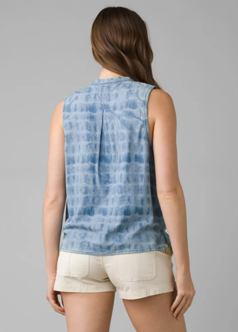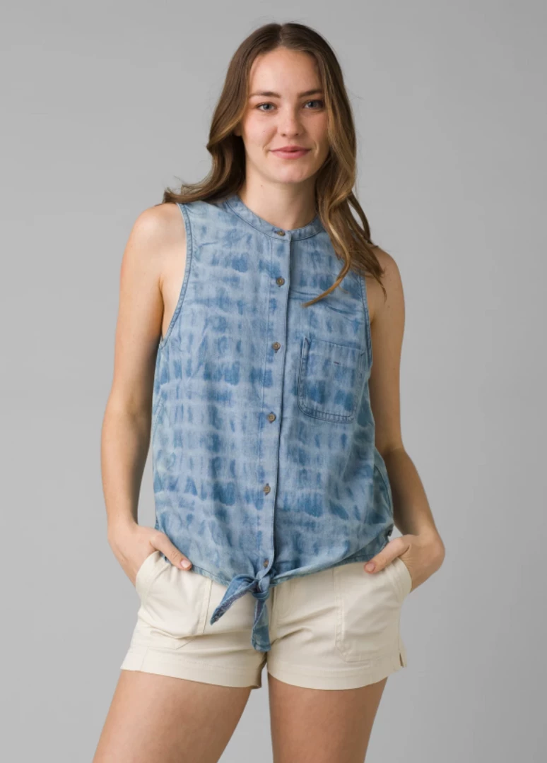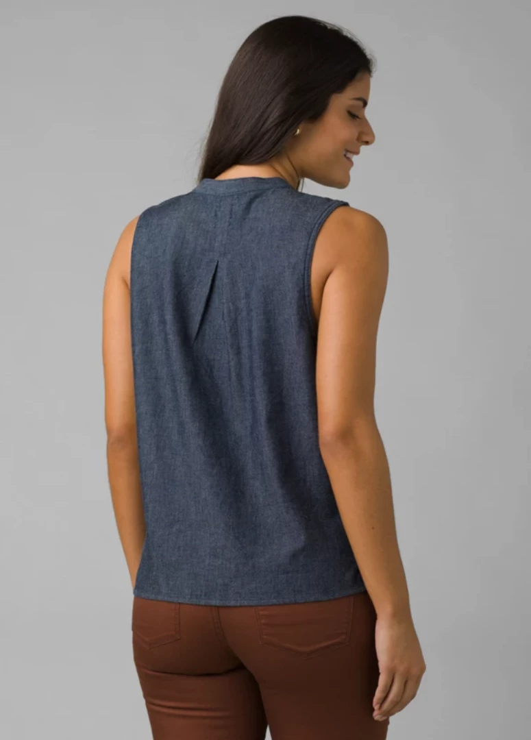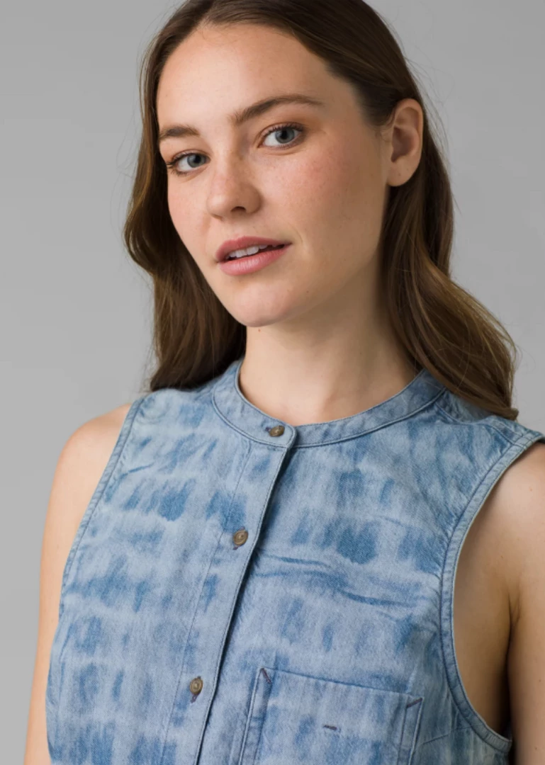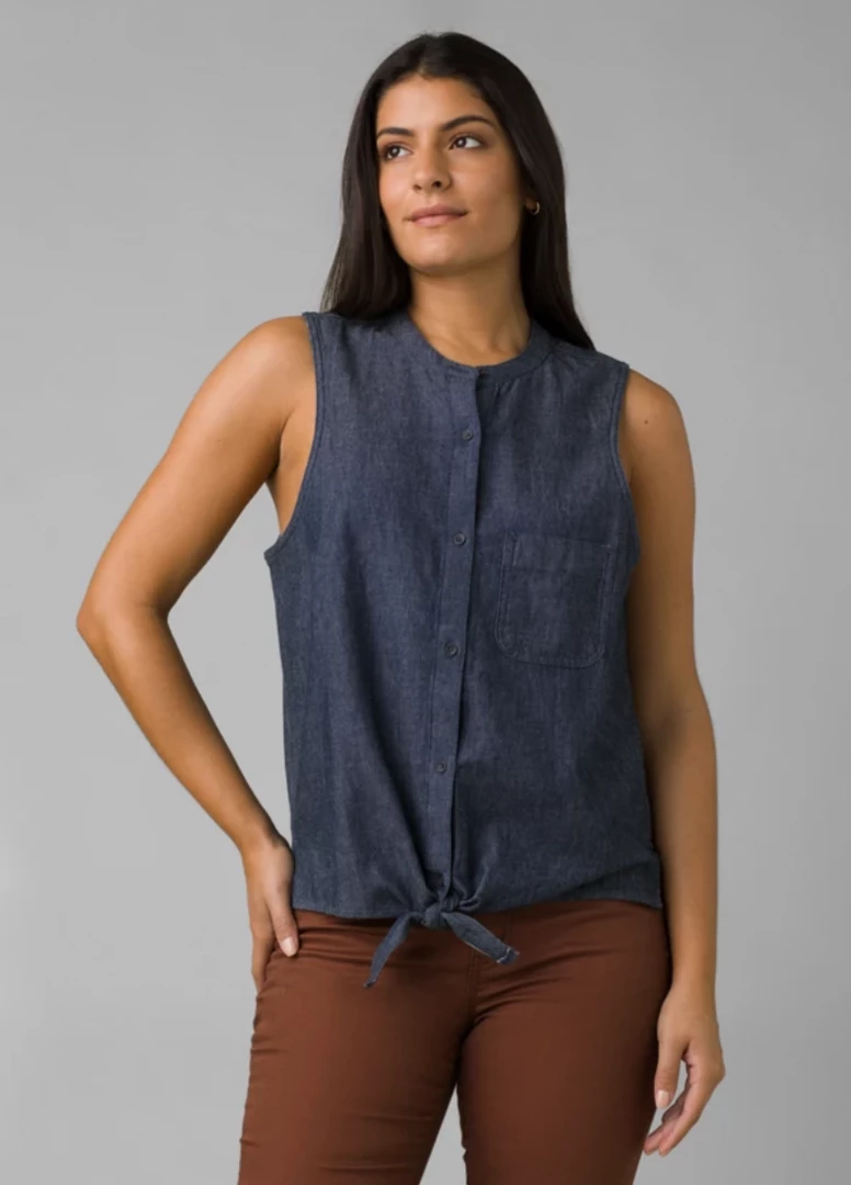 Meet the shirt that never goes out of style. The one with a little attitude that brings back memories of summer fun. Only this sleeveless denim-look shirt is 100% sustainable and made from delightfully soft chambray.