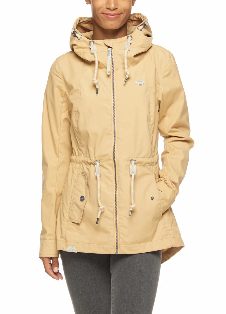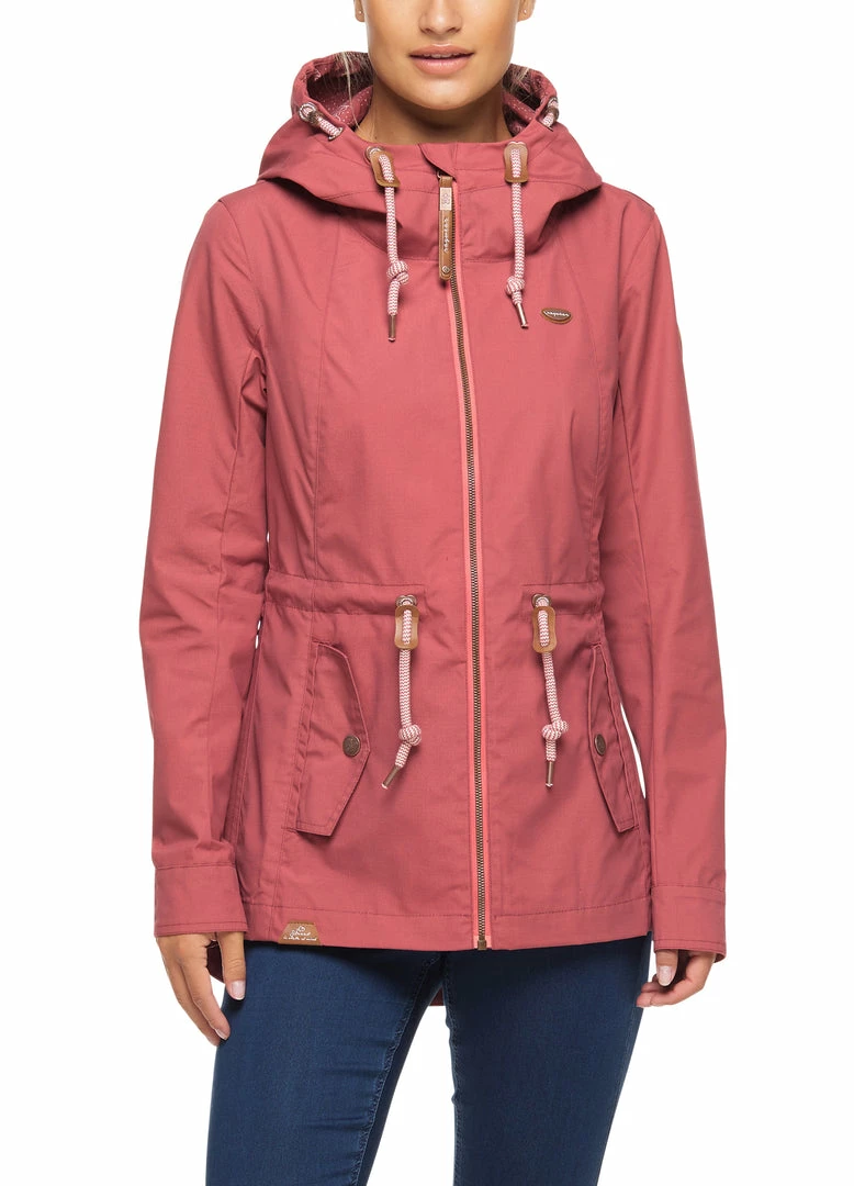 Waterproof Ragwear jacket. This Ragwear jacket has a hood, drawstring waist, and deep pockets and a perfect length below the waist.Â