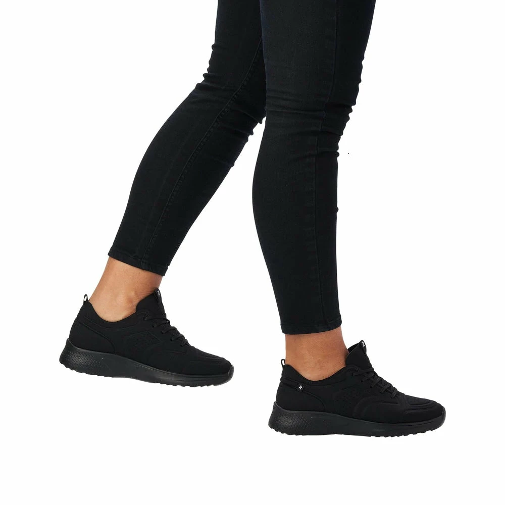 Introducing the R-Evolution brand from Rieker – New for SS22. These black Rieker women’s trainers are a super style for casual wear this spring summer season. The lace up front offers an adjustable and secure fastening and these sneakers have a cushioned collar for a snug fit and padded footbed offering incredible underfoot comfort. Removable insoles are ideal if custom orthotics are required. Perfect for all day wear these Rieker trainers are the ideal addition to your wardrobe.