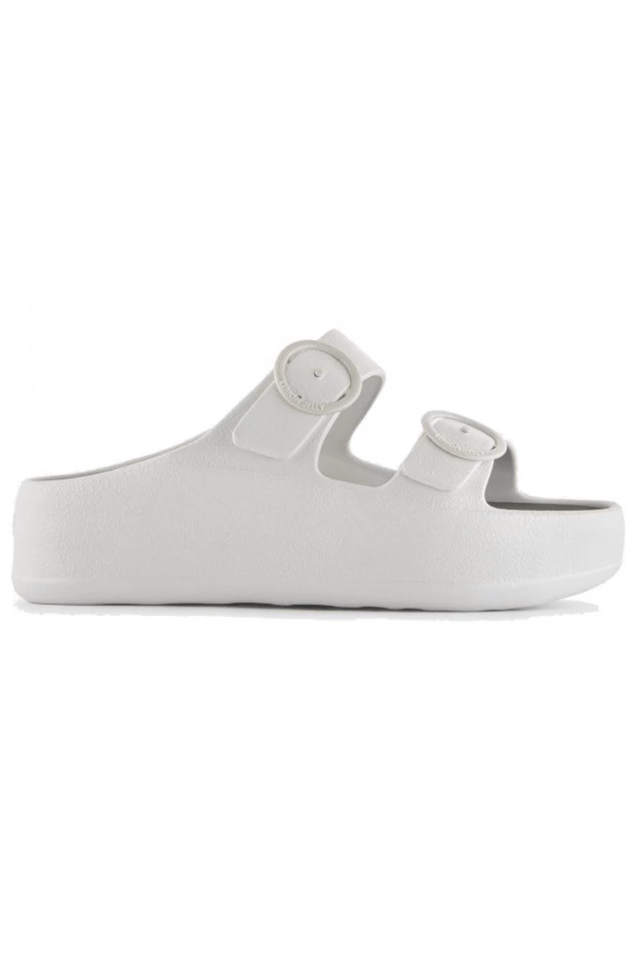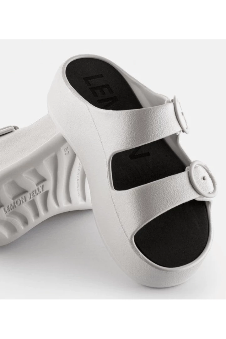 Revived from the classic 2 buckle style, the Lemon Jelly Women’s Gaia Platform Slides in White are one of the trends’ favourites for the season. Maintaining a simple design but thriving from its extreme comfort and lightness its bound to be your summer everyday companion, always produced with no animal components.