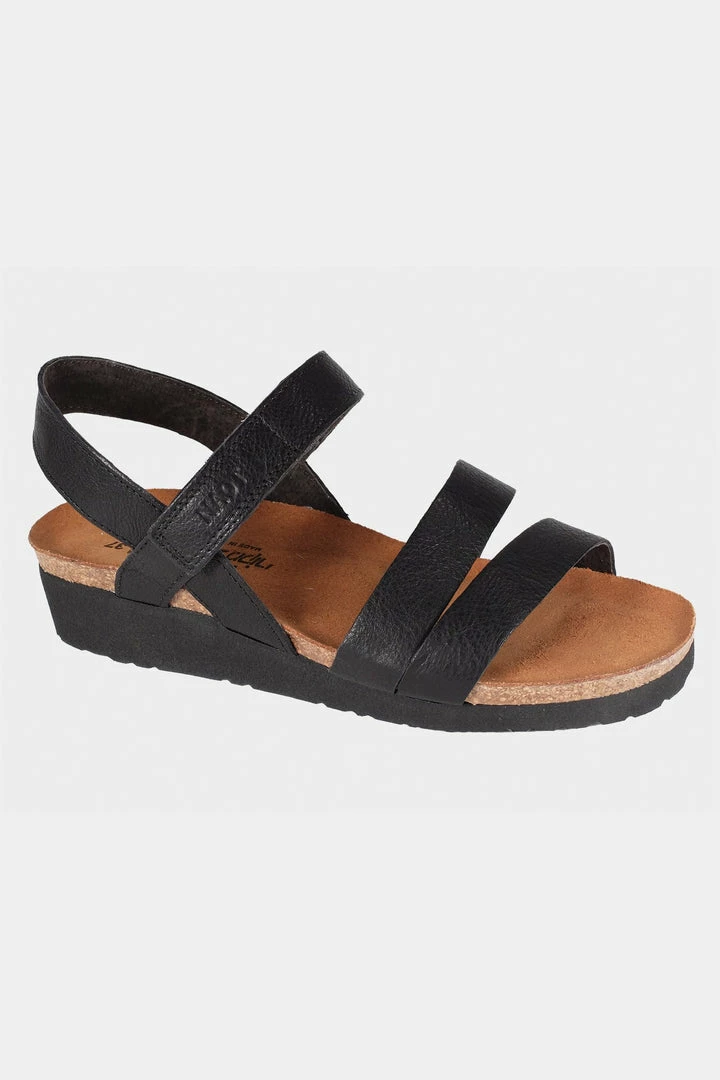 The Kayla is a three-strap sandal with a hook & loop strap at the instep and a backstrap for added stability and support. Naot’s anatomic cork & latex footbed is wrapped in a pampering suede and molds to the shape of the foot with wear.