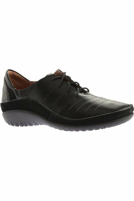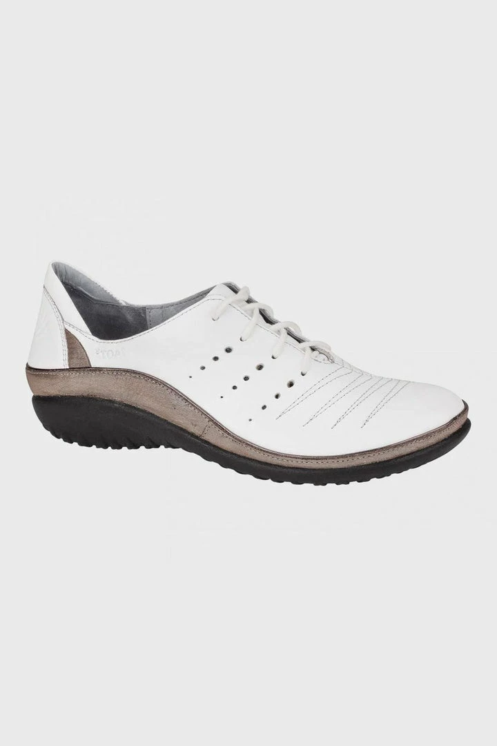 The Kumara is an orthotic-friendly lace up shoe on the Koru collection. This style features a unique stitch detailing with small perforations on the upper. The front portion of this shoe includes features such as padded technical lining to provide additional comfort and remove moisture as well as a padded heal cup for increased stability and support. This style also features NAOT’s removable anatomically-correct cork and latex innersole which is wrapped in soft suede which moulds to the foot with wear. The NAOT Women’s Koru Collection features a 3.54cm polyurethane sole which is extremely lightweight, flexible, and durable.patented Naot Replacement Footbeds are also available for Kumara.