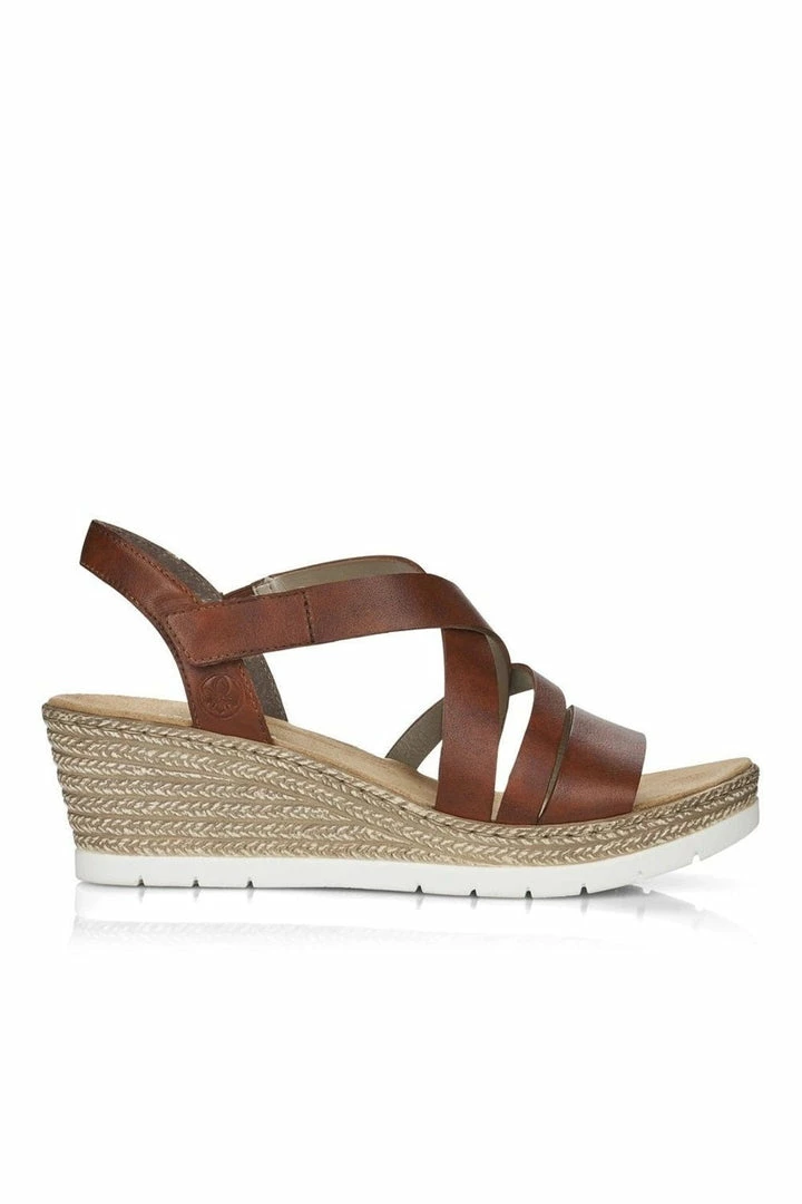 You can’t go wrong with a wedge sandal in the upcoming summer, especially when this model comes from Rieker. So you can be sure of both quality and comfort. The classic brown of the high-quality straps made of genuine leather is extremely appealing, which harmonizes super with the white Antistress outsole and the wedge heel in braided look. The front part of the straps is also lined with imitation leather, which enhances the great barefoot feeling. This is primarily due to the soft synthetic insole. In addition to a practical velcro fastener, the women’s sandal also has a small elastic band for an even better fit.