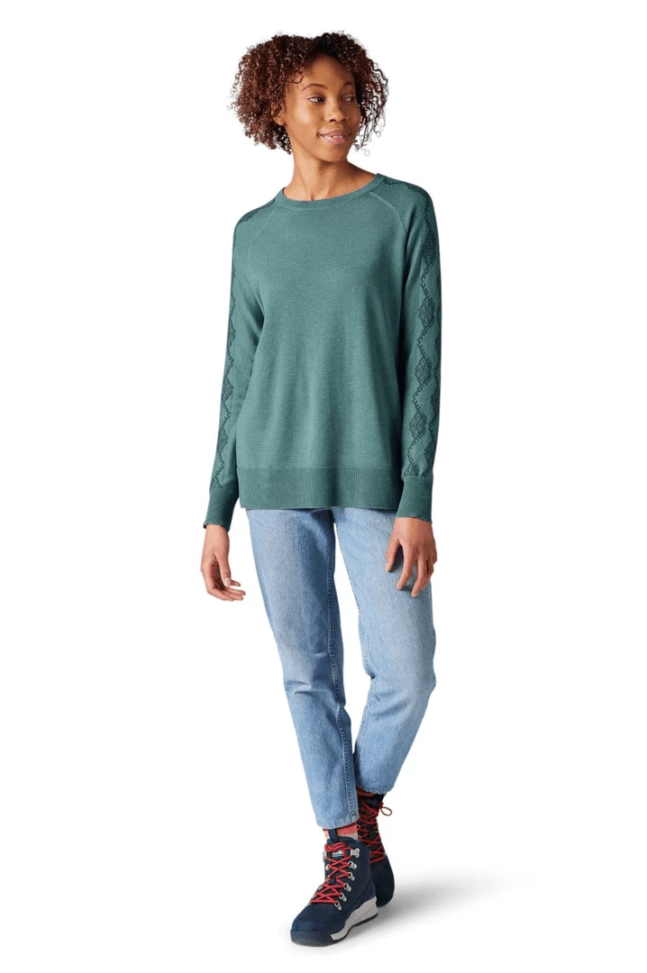 Constructed with a blend of recycled polyester and responsibly sourced Merino wool, the Women’s Shadow Pine Needlepoint Crew Sweater is both environmentally conscious and luxuriously comfortable. With textured pattern on the sleeves and a rib knit pattern down the back that ends in a dovetail hem, it’s charming and attractive. You’ll find it hard to wait for sweater weather!