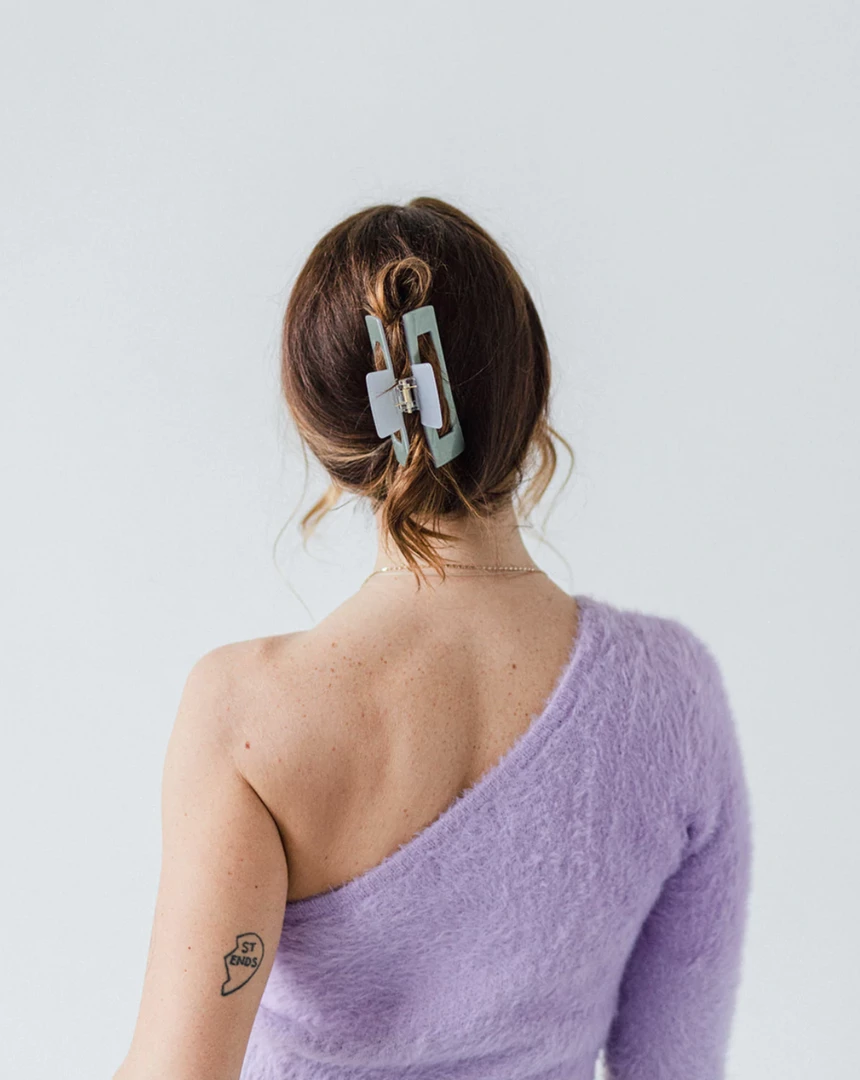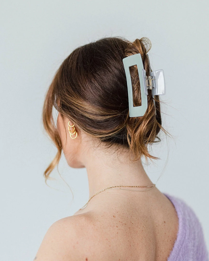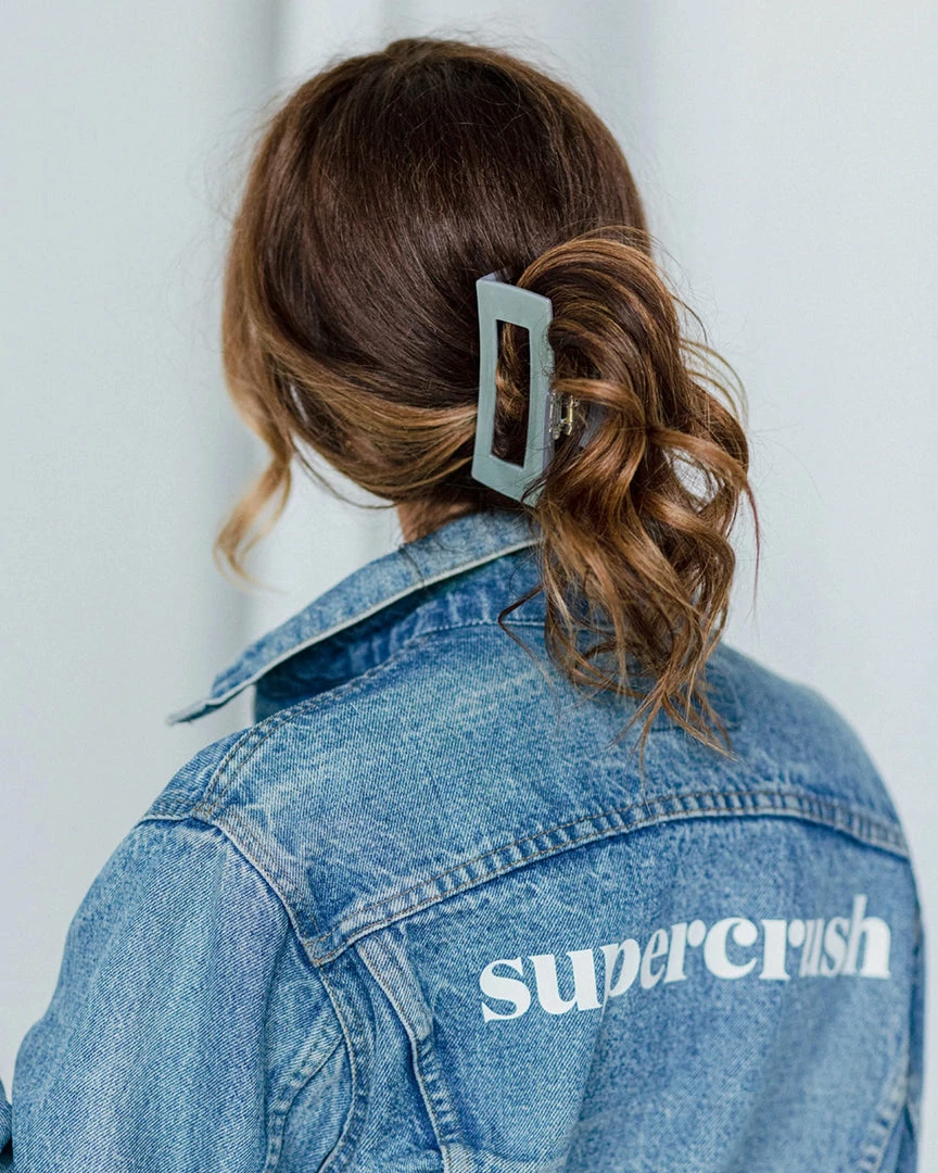 The Crush Clip is perfectly oversized and offers strong grip in all hair types. Perfect for sleek updos, half-up styles, fresh twists, or any 90’s-inspired look. Â