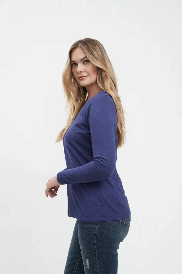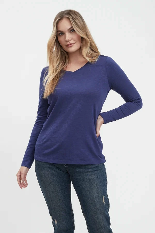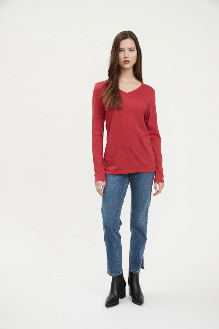 Beathable cotton-modal slub fabric, v-neck, long sleeve, straight hem