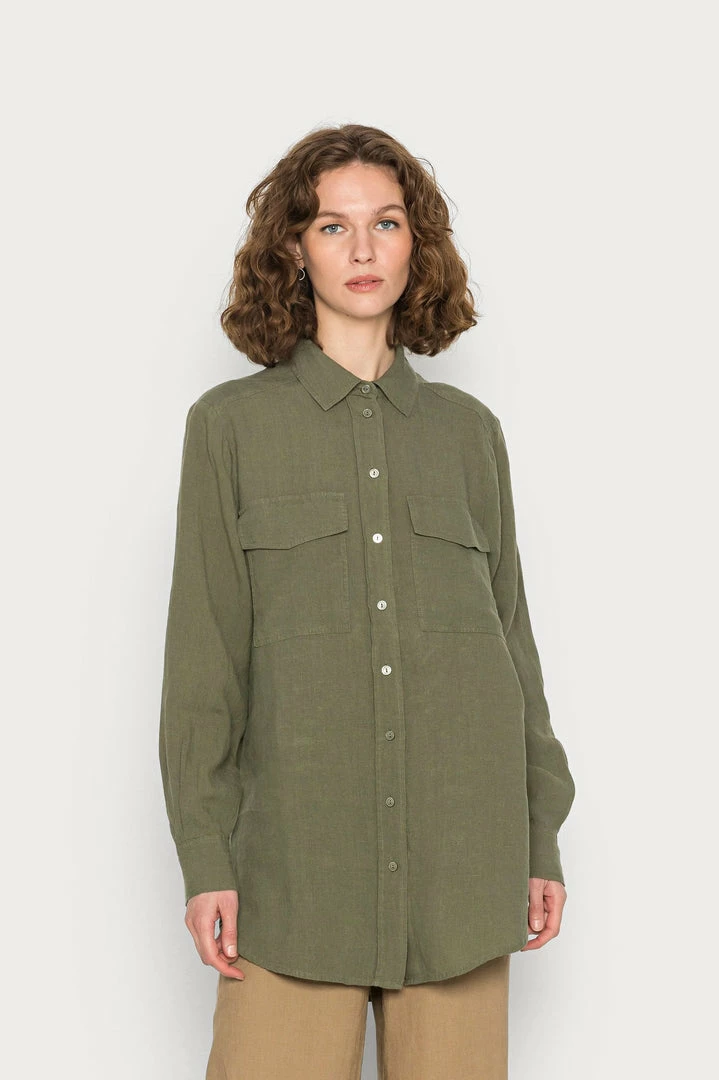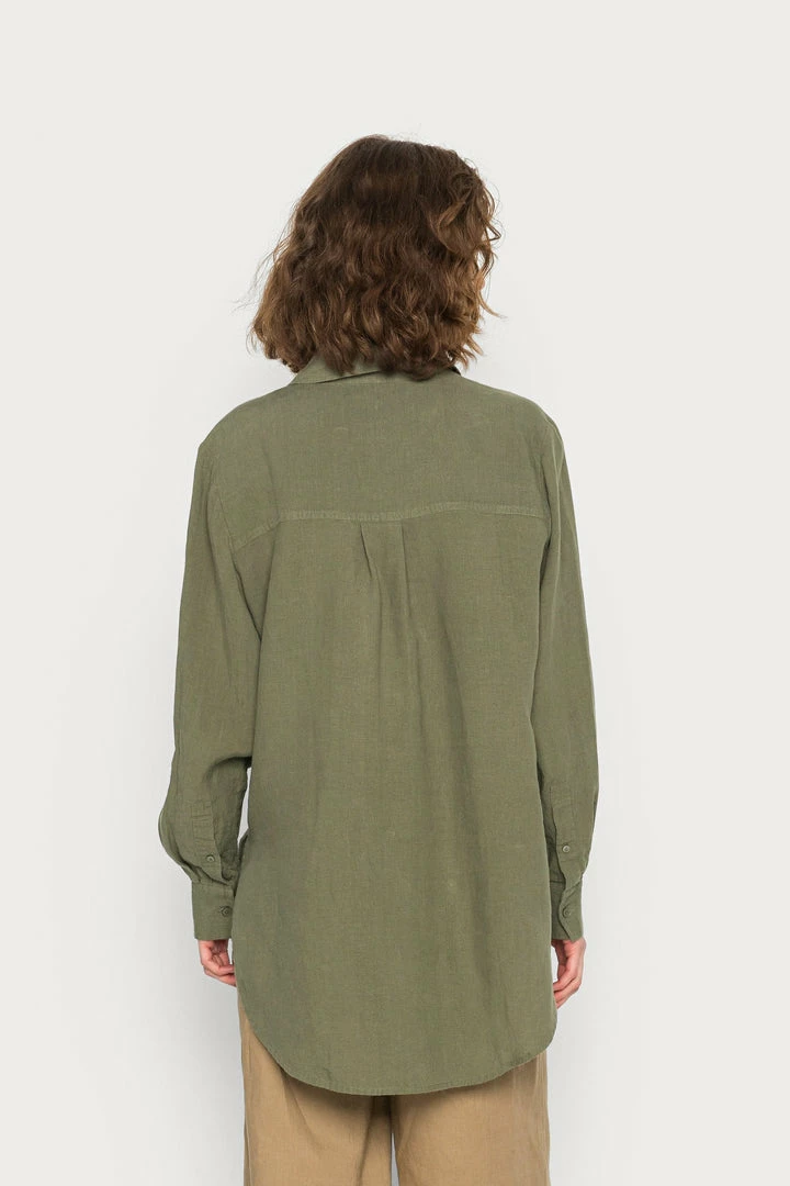 This relaxed fit Linen shirt by Part Two is a longer length. Ideal worn buttoned up with chinos or jeans or as a layering piece over a vest or T-Shirt. Wear it open with sleeves turned back for a casual feel.