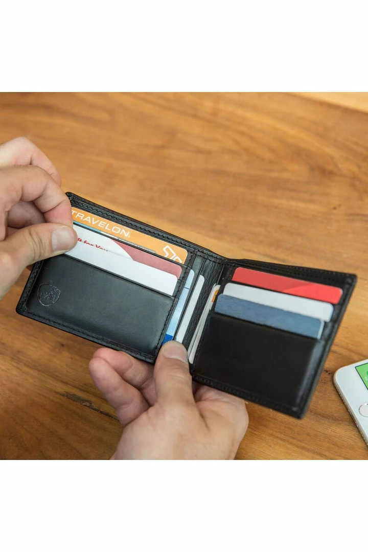 Travel with style and security. Our genuine leather billfold wallet is iconic with its stealth organization. The ideal size for hip pocket carry. Made with soft yet durable leather, combined with modern RFID blocking protection shield your identity and the valuable information that you carry every day.