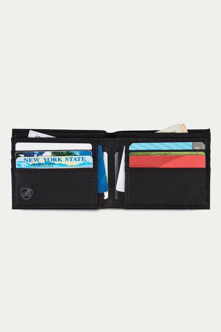 RFID Blocking Billfold Wallet is a fully-featured wallet without the cumbersome size and clever design that helps keep your wallet slim and everything in it easily accessible. Durable canvas and genuine leather accents, combined with modern RFID blocking protection to shield your identity and the valuable information that you carry with you every day